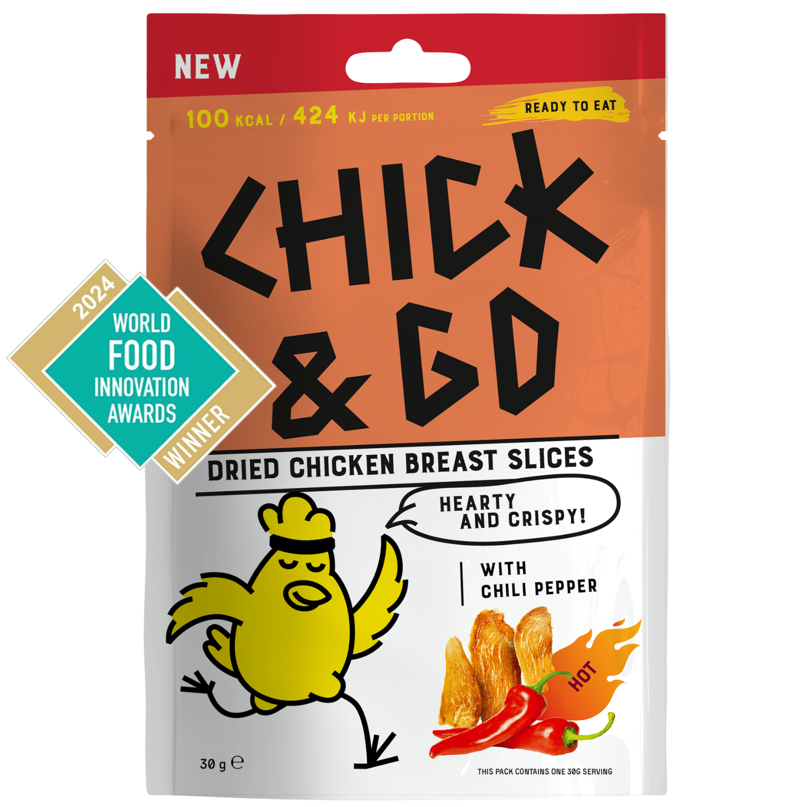 Onze gedroogde eiwitrijke kipsnack is een unieke twist op traditionele vleessnacks en is erkend als 's werelds meest innovatieve voedingsproduct 2024. Het is gekruide kip die als geheel wordt gedroogd en vervolgens in dunne plakjes wordt gesneden, wat zorgt voor malse stukjes die makkelijk te kauwen zijn. Elke zak is keto-vriendelijk en perfect als een gezond dagelijks tussendoortje.