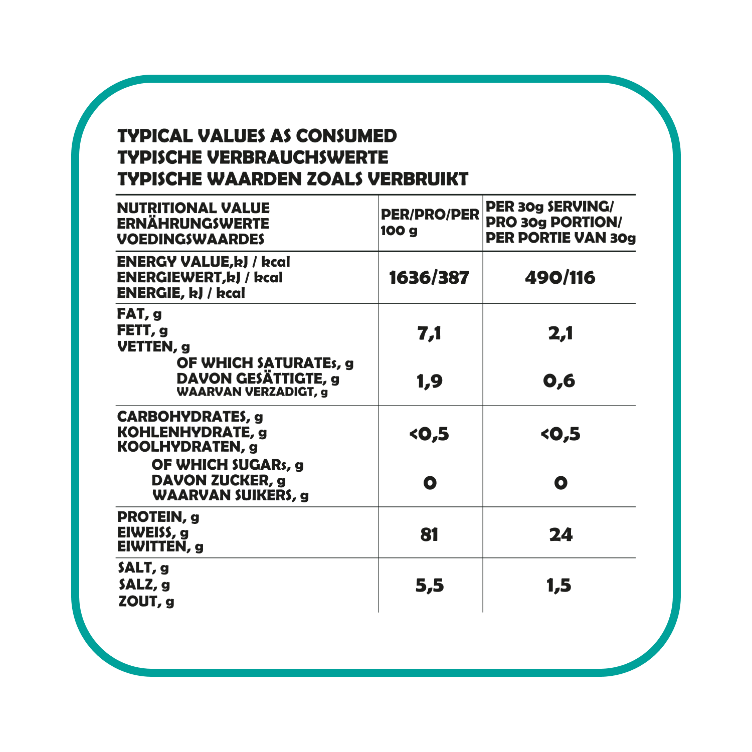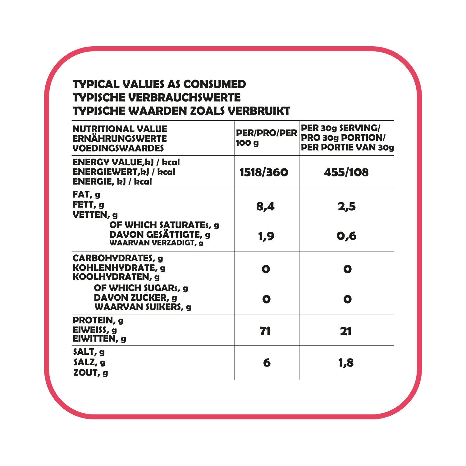 - Knapperig & eiwitrijk (81% eiwit)